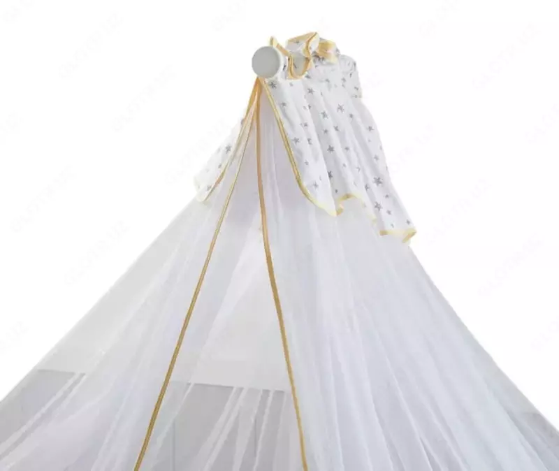 Москитная тюль выполнена из прозрачного материала, благодаря которому обеспечивается циркуляция воздуха внутри колыбельки, а защитные свойства изделия обеспечат спокойный сон ребенка от комаров и насекомых.